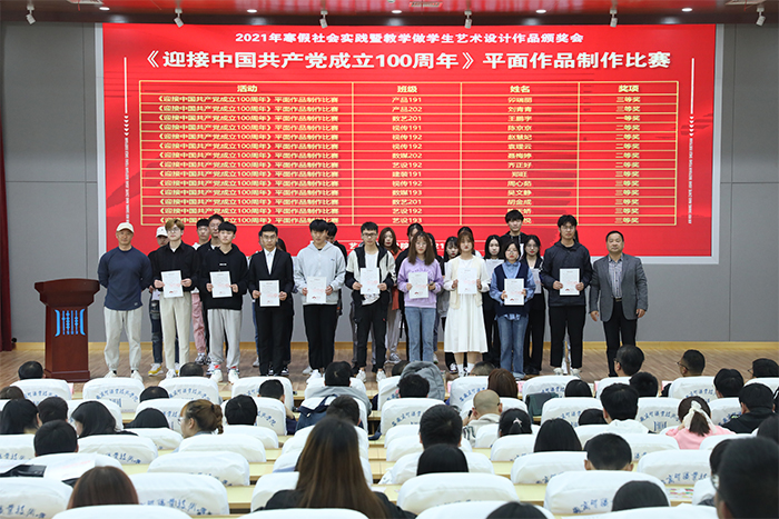 4月21日下午,艺术设计学院在学校学术报告厅隆重举办“2021年寒假社会实践暨“教学做”学生艺术设计作品颁奖大会”,校党委委员、学工部部长、团委书记郑伟,教务处处长黄义兵,马克思主义学院院长杨卫宏等校职能部门领导应邀到场指导进行工作指导,艺术设计学院全体教师和400余名学生代表参加了颁奖大会。