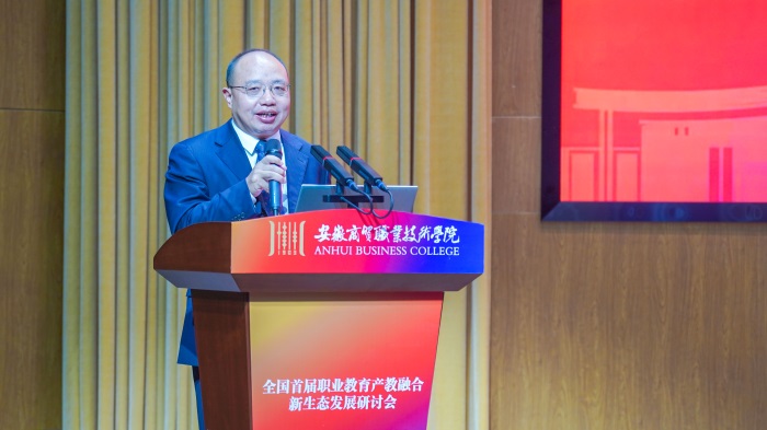 周建松围绕“产教融合赋能职业教育高质量发展”作主题报告。从类型教育与产教融合国家制度、产教融合赋能职业教育高质量发展、职业教育高质量发展学校何为三个方面进行了解读。他指出,以产教融合赋能职业教育高质量发展既是国家的政策和期待,更应成为职业院校的自觉行动,必须增加主动性、增强创新性,要以主动和创新作为,谋求政府、行业、企业的互动与合作支持,推动学校各项事业在高质量发展道路上稳步前行、高歌猛进。