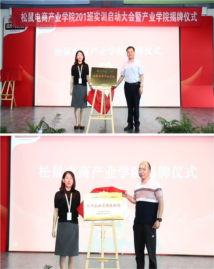 随后,校企双方领导为产业导师颁发了产业导师聘书,双方代表共同为“松鼠电商产业学院”和“教师企业实践流动站”揭牌。