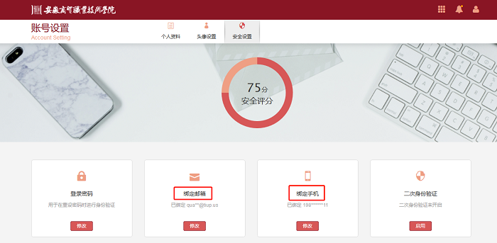 1、 打开https://i.abc.edu.cn数字ky体育app官方,选择平台中的“个人账号”,点击“安全设置”进入账号设置页面。