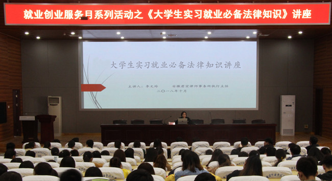 为增强大学生在择业过程中的自我保护意识,学习和掌握择业过程中的相关法律法规政策,10月31日下午,招生就业处和电子信息工程系联合主办了大学生就业指导服务专题讲座。本次讲座特邀第九届芜湖市优秀青年、第十三届芜湖市政协委员、芜湖市律师协会理事、芜湖市律师协会法律顾问专业委员会副主任李文玲主讲,电信系2016级学生代表聆听了报告。