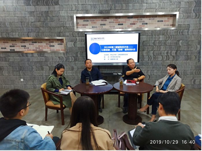 10月29日下午,学校学生工作部在图书馆多功能厅举办2019年第二期辅导员沙龙,校党委委员、学生工作处处长郑伟主持了沙龙,工商管理系党总支书记韩飚、工商管理系辅导员“第十届全国高校辅导员年度人物入围奖”获得者陆娟、2018年安徽省辅导员素质能力大赛一等奖获得者吴莉莉应邀担任嘉宾,本期沙龙由学生工作部主办,工商管理系党总支承办。