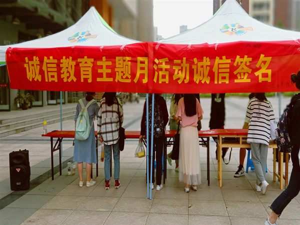 为了进一步培养当代大学生的诚信精神,增强当代大学生的文明诚信意识,提高当代大学生的诚信力度,我系学生会资助部于2019年5月16日在学校一食堂门口开展诚信签名活动,在此次活动中为在校大学生营造了良好的文明诚信氛围,使他们意识到诚信的重要性。