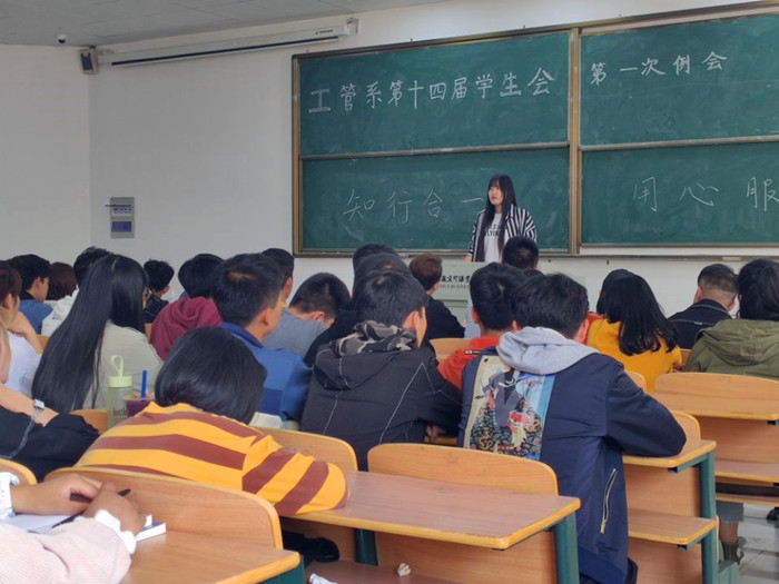 为了迎接学生会新成员们的到来,我系团总支决定于2019年10月18日在笃学楼103教室召开第十四届学生会第一次大会。成员由主席团,各部门部长及全体干事参与的同时,还特邀团总支书记徐小东老师做指导说话。