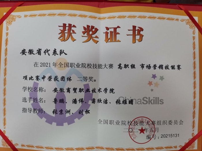 6月20至22日,2021年全国职业院校技能大赛高职组市场营销技能赛项在江西省南昌市举办,来自全国31支代表队参加了比赛。我校电子商务学院张京洲、刘松两位指导老师带领鲁鹏、薄欣洁、张雅晴、潘伟四位同学作为安徽省代表队参赛,经过两天的激烈角逐,最终成绩得分为89.67分,荣获国赛二等奖。