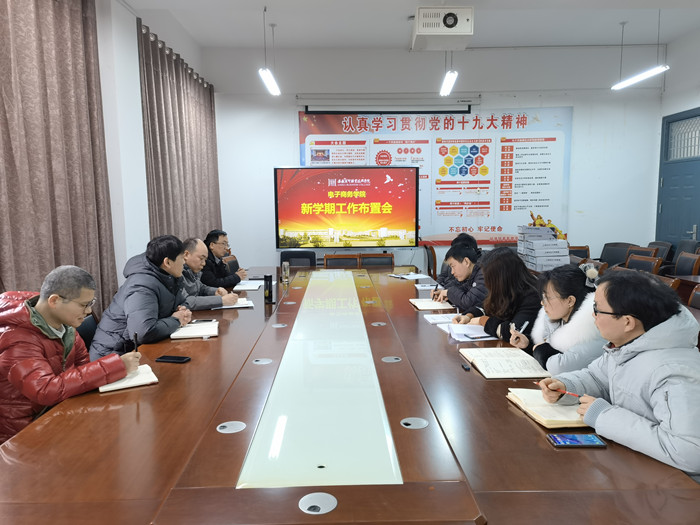 迈入新学期,奋进新征程。为确保新学期各项工作有序开展,2月17日上午,电子商务学院在会议室召开新学期工作布置会议。会议由党总支书记魏力主持,学院党总支委员、领导班子成员和各教研室主任参会。