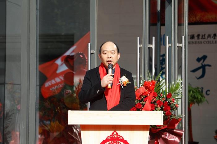 电子商务学院院长夏名首代表学院全体师生向莅临仪式的各位领导及嘉宾表示最热烈的欢迎,向为学院建设贡献力量的历任领导、前辈表示感谢。他表示,日后,电子商务学院将乘着大楼新起的东风,为建设“五大美好商贸”积蓄力量,为建设双高校、争创职教本科而不懈奋斗!