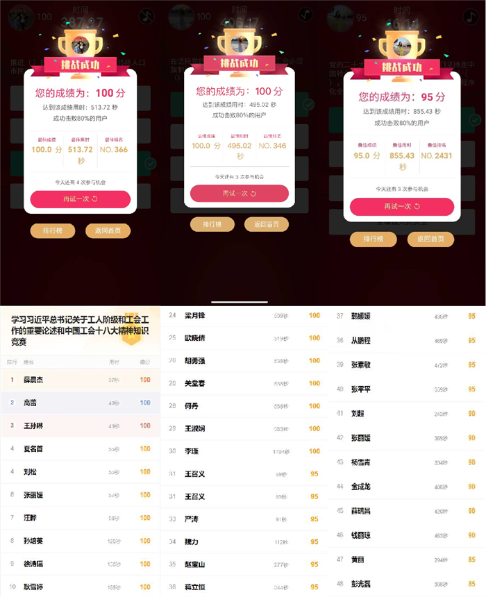 随后,教师们积极参与了“学习习近平总书记关于工人阶级和工会工作的重要论述和中国工会十八大精神线上答题”和分工会知识竞赛,在紧张而激烈的竞赛中,教师们充分展示了自己的学识和智慧,他们用扎实的专业知识和敏锐的思维,回答了一系列关于工人阶级和工会工作的问题。