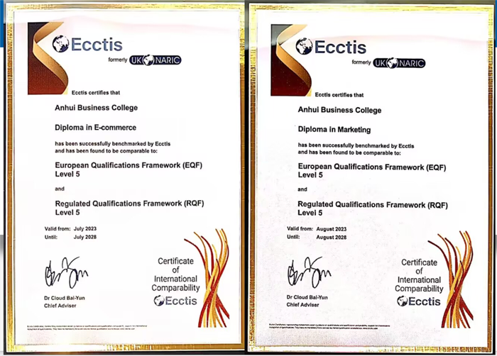 图14 电子商务、市场营销专业通过UK ENIC国际专业标准评估认证