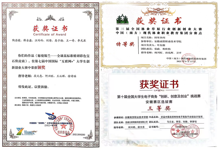 图12 学生“互联网+”、挑战杯等创新创业大赛国赛获奖证书