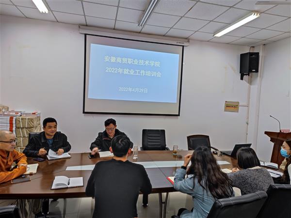 为深入贯彻安徽省教育厅就业促进周和“百日冲刺”系列活动工作方案精神,推动二级学院就业工作持续落实。4月29日学校在弘商楼一楼招聘大厅召开2022年就业工作培训会,招生就业处副处长鲁楠,各二级学院就业专员参加会议。
