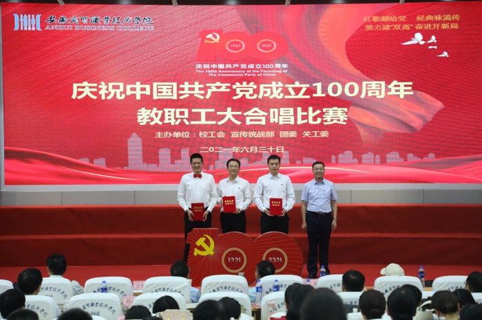 为隆重庆祝中国共产党成立100周年,讴歌实现中华民族伟大复兴中国梦的奋斗历程,进一步推进党史学习教育深入开展,激发广大教职工爱党、爱国、爱人民、爱校热情,6月30日下午,学校隆重举行庆祝中国共产党成立100周年教职工大合唱比赛,以合唱的方式表达心中的爱国情、敬党心,用嘹亮的歌声为党的生日献礼。全体教职工参加了本次活动。