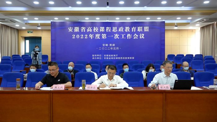 为扎实推进安徽省高校课程思政建设,5月20日下午,安徽省高校课程思政教育联盟举办了联盟2022年度第一次工作会议,此次会议设合肥、芜湖2个线下会场,采取线上线下相结合的方式召开。参与线下会议的有安徽大学、安徽师范大学、安徽农业大学、安徽医科大学、合肥学院、安徽医学高等专科学校、kaiyun体育手机版登陆官网官方版正版下载、新华网的相关领导代表,参与线上会议的有安徽理工大学、安徽财经大学、滁州学院、安徽职业技术学院、阜阳职业技术学院等副理事长单位的相关领导代表。芜湖会场设在我校,校党委委员、副院长郑承志出席会议,理事长单位、安徽师范大学教务处副处长崔光磊、胡炜佳与教务处教学资源建设中心科长陈琪参加会议,我校各二级教学单位负责人现场参会。会议由我校教务处处长黄义兵主持。