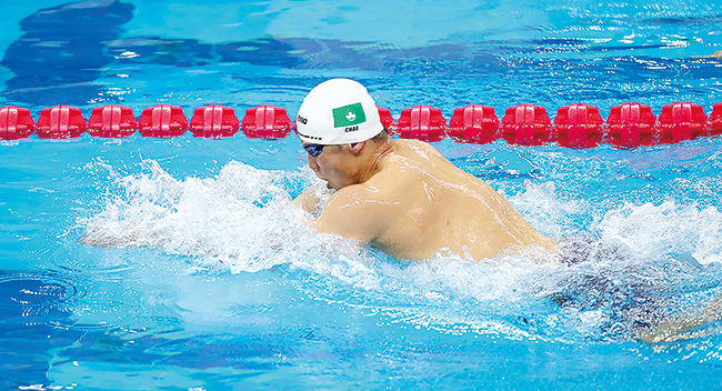 第十四届全国学生运动会大学组男子蛙泳100米,中国澳门选手出战。 (图片来源:视觉中国)