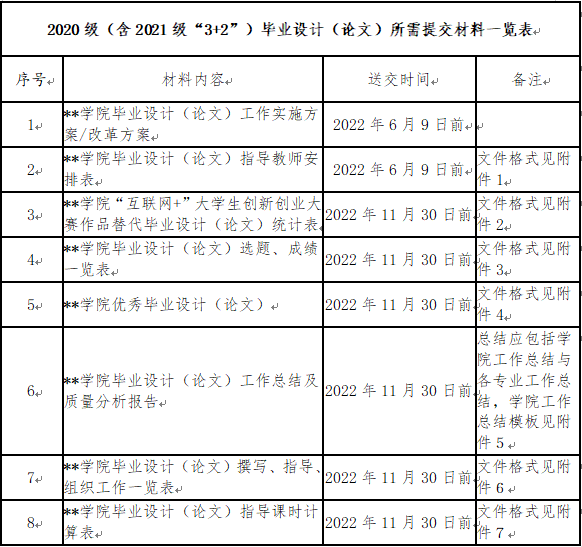 2020级(含2021级“3+2”)拟以 “互联网+”大学生创新创业大赛作品替代毕业设计(论文)的学生须将获奖证书复印件、参赛作品按照毕业设计(论文)的相关要求装订成册并提交至学院部留存。各学院将统计表提交至教务处即可,统计表格式见附件2。