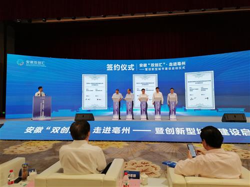 6月27日上午,校政双方共同出席由安徽省科技厅、亳州市人民政府共同主办的安徽“双创汇”·走进亳州——暨创新型城市建设启动仪式,代表校政双方共同签署合作框架协议。
