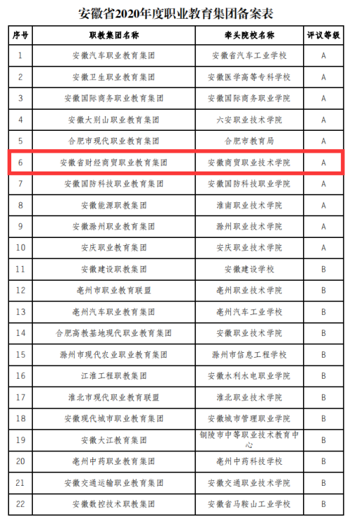 图1 安徽省财经商贸职业教育集团年度工作评议A等级