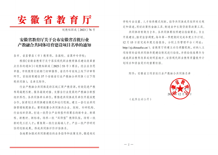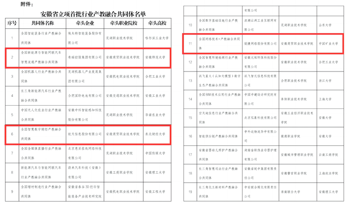 图6 学校3个行业产教融合共同体获批安徽省首批行业产教融合共同体培育建设项目