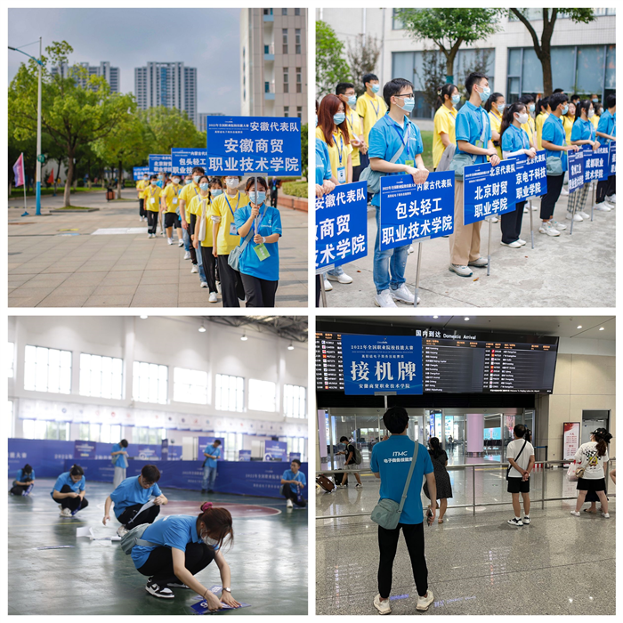 尽职尽责,温情服务。7月27日至29日,志愿组的师生早出晚归,穿梭于南京禄口机场、芜宣机场、芜湖高铁站等地,用灿烂的微笑和贴心的服务迎来了来自各省、自治区、直辖市及新疆生产建设兵团的60多支代表队260名选手。30日至31日进入比赛阶段,志愿者们往返于赛场和驻地酒店之间,进一步围绕开闭幕式环节开展演练和彩排,并做到随时待命,第一时间响应任务。几天的时光忙碌又充实,收获了参赛师生的高度评价。