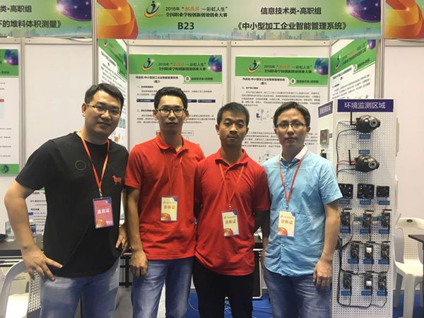 匠心筑梦,创绘青春。8月11日至14日,由共青团中央、教育部、人社部、中国科协、全国学联等单位主办的2016年“挑战杯——彩虹人生”全国职业学校创新创效创业大赛决赛在福建省福州市举行。我院孙握瑜、周正贵两位老师指导的参赛作品《中小型加工企业智能管理系统》经过激烈的省级决赛、全国复赛、全国决赛角逐,最终荣获全国二等奖,这也是我院首次在挑战杯系列比赛中获得国家级奖项。