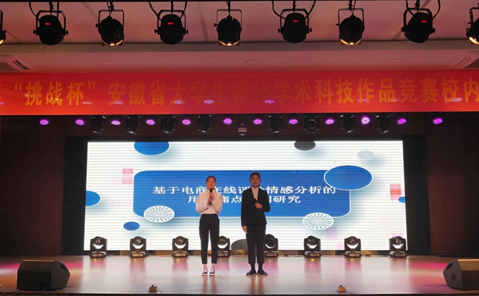 崇尚科学、追求真知、勤奋学习,锐意创新、迎接挑战。为深入贯彻习近平新时代中国特色社会主义思想,学习贯彻党的十九大和十九届二中、三中全会精神,进一步引导我校学生的科学精神和科学态度,积极学习科学知识和运用科学方法,踊跃投身创新驱动发展战略,为全面建成小康社会贡献青春力量。日前,第八届“挑战杯”安徽省大学生课外学术科技作品竞赛校内选拔赛决赛成功举行。