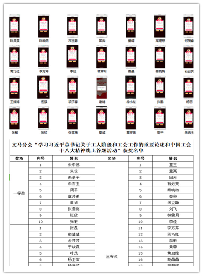 活动首先集中学习了习近平总书记关于工人阶级和工会工作的重要论述精神、习近平总书记同中华全国总工会新一届领导班子成员集体谈话重要讲话精神、中国工会第十八次代表大会精神,并观看了《工会在您身边》宣传片。会上,要求所有会员利用空余时间自学党的二十大精神、《习近平关于工人阶级和工会工作论述摘编》、习近平总书记在同中华全国总工会新一届领导班子成员集体谈话时的重要讲话和中国工会十八大精神、《工会法》、《中国工会章程(修正案)》、《劳动法》、《劳动合同法》等应知应会内容。随后,针对学习内容,分工会组织了线上答题竞赛活动,所有会员积极参与,根据大家的得分情况进行了成绩统计和排名
