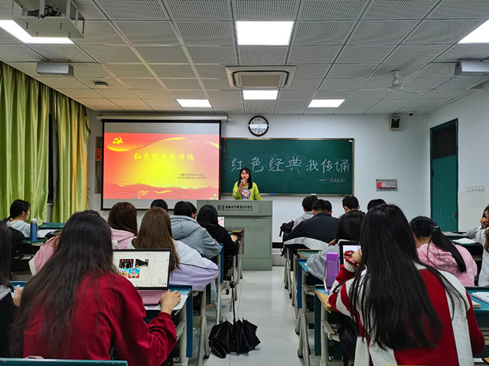 南湖红船星星火,红旗指引向未来。2021年,是中国共产党建党100周年。为了庆祝中国共产党建党一百周年华诞,感受建党百年的艰辛历程和巨大变化,颂扬党的丰功伟绩,进一步激发文秘201班同学们热爱祖国、热爱党的赤诚情怀,激励广大同学坚定理想信念,在辅导员的指导下,文秘201班于3月30日晚举办了一场主题为“铭记辉煌历史,传颂红色经典”的诗文朗诵比赛。