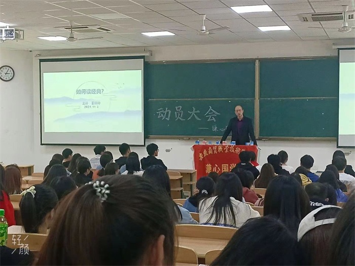 11月3日下午,笃学楼104教室座无虚席,谦心国学社举行新一届会员大会。文法学院院长、谦心国学社指导老师王锦坤应邀出席,并为会员分享了如何读经典。
