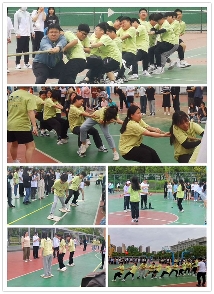 田赛的比拼,同样精彩。运动员们个个摩拳擦掌,豪不示弱。高度和远度仿佛是他们追逐梦想的尺度,面对目标迈出坚定的步伐,跳了一次又一次,即使失败也不放弃,值得一提的是文秘211班黄书飞同学取得了女子跳远第二名的好成绩;沉重的铅球在他们手中仿佛变成了一个个充满希望的许愿球,自己的梦想也随着铅球的“飞翔”定格在出手的一刹那;小小接力棒,棒棒传力量,接力的比赛让大家知道了团队协作的重要性,无形之中为同学们的日常交流上了一课;最激动人心的是拔河项目,文法学院女子拔河队齐心协力,队员们紧握长绳,喊起口号,跟着节奏,卯足了劲拼命往后拉,未参赛的同学白发组成啦啦队为比赛队员呐喊加油,哨子声、呐喊声此起彼伏,现场激烈的比赛将整个活动推到了高潮。比赛过程中,队员们努力拼搏,无论是场上还是场下,气氛都异常激烈,拉拉队每一声呐喊都带来一股力量,经过六场激烈的角逐,最终勇夺第一。可以说"更快、更高、更强"的奥运精神在他们身上得到了无限的张扬,这种不断超越自我的精神是他们个人的巨大财富,更是将来能够走得更高更远的稳固基石。
