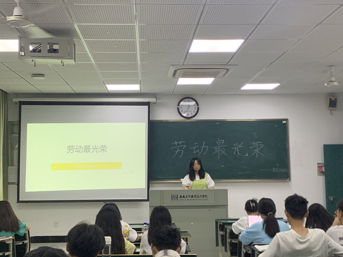 活动中,生活委员组织大家观看了视频“致敬‘平凡而伟大’的劳动者”,号召同学们养成勤于劳动、善于劳动、乐于劳动的良好习惯,并动员同学们打扫寝室卫生,抓拍寝室成员劳动时的情景,记录下寝室焕然一新的面貌。