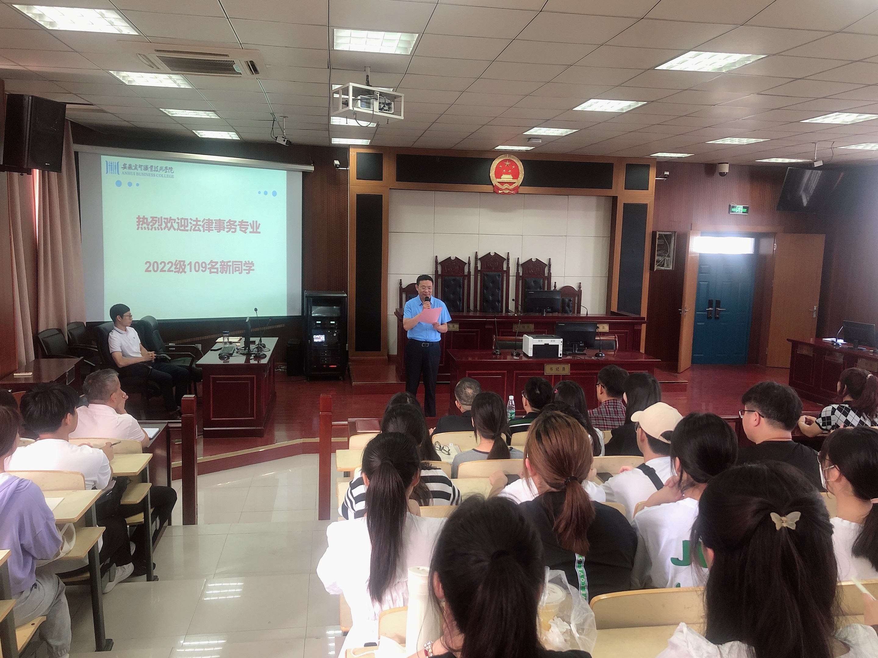 9月16日,文化与法律学院分专业分场次召开2022级新生专业介绍会,学院党总支书记朱吉玉、副院长陈辉和法学教研室、文秘教研室、人文素养教研室相关专业课教师、新生辅导员以及全体新生参加会议。
