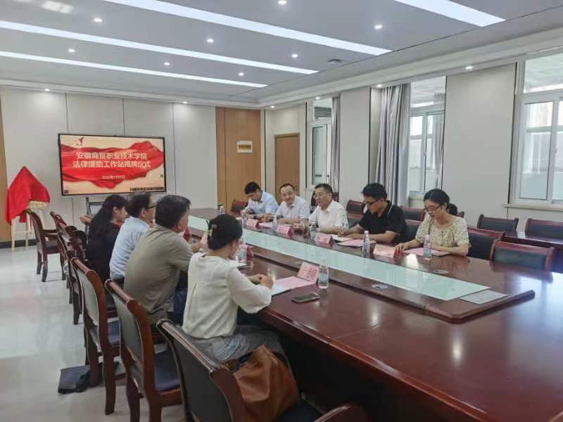 7月5日下午,芜湖市司法局四级调研员季兵一行,来我校为安徽商贸职业学院法律援助工作站挂牌。党委委员、副院长郑承志与季兵共同举行了揭牌仪式。文化与法律学院副院长陈辉、法学教研室主任石必亮及专业教师参加了揭牌仪式。