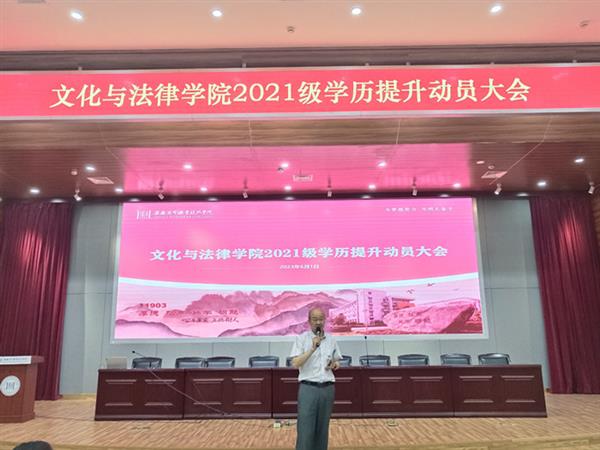 此次动员大会帮助2021级学生消除了毕业前的迷茫,明确了目标方向,极大地鼓舞了大家提升学历的决心,同学们将以更加积极的状态、更加饱满的热情去做好充分的准备。文化与法律学院历来重视学历提升工作,从领导班子到各教研室、各部门,在动员、备考、考试、录取等各环节为同学们提供耐心细致的服务,全力为学生学历提升保驾护航。