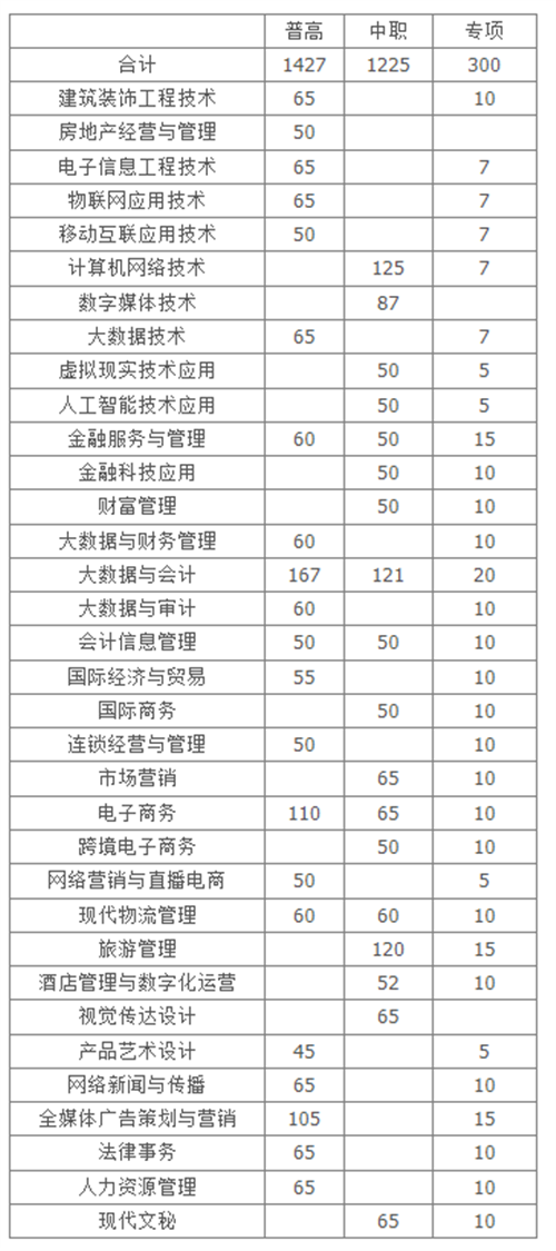 根据安徽省教育厅《安徽省教育厅关于做好2023年高等职业院校分类考试招生工作的通知》(皖教秘高〔2023〕31号)文件精神,结合学校2023年分类考试招生考生报名、师资情况,经研究,对学校本年度分类考试招生计划数予以扩大调整,下表中招生计划为该专业上限招生人数。