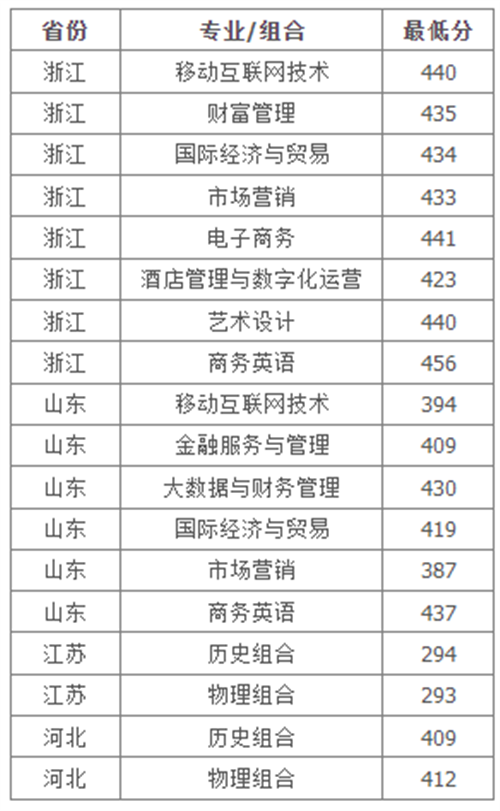 学校2022年秋季招生省外最低投档分