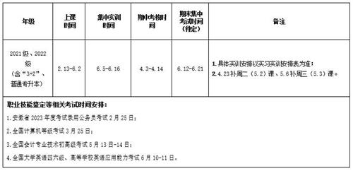 2022-2023学年第二学期各年级主要教学环节日程安排表
