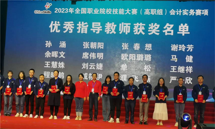9月23日,2023年全国职业院校技能大赛(高职组)会计实务赛项在辽宁沈阳职业技术学院圆满落幕。来自全国76所高职院校的304名选手同台竞技。由我校会计学院王曜威、靳雅婷、匡佳萍、钟胜宇四位同学组成的参赛队经过一天的激烈角逐,以全国第二名的优异成绩荣获一等奖。张春想、谢玲芳两位老师荣获“优秀指导教师”称号。值得一提的是,在财务数字化业务处理模块中,四位选手沉着应战、不畏疲劳、稳定发挥,以总分300.67获得该模块全国第一名。