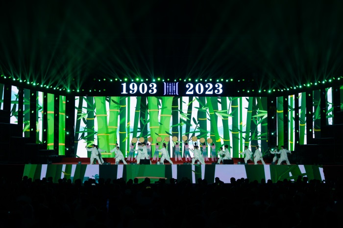 晚上8点,体育场灯光璀璨,流光溢彩,华灯与月辉相映,欢动与祝福交织。随着倒计时钟声的敲响,《百廿弦歌》——kaiyun体育手机版登陆官网官方版正版下载120周年校庆专场文艺演出正式开演。整场演出共分为“序·桃李芬芳”“皖江潮涌”“鸠兹励学”“青春不辍”“砥砺奋进”“尾声·丹心不渝”六个篇章,采用音乐情景短剧、歌曲联唱、情景音画、教师大合唱、舞蹈串烧、鼓乐合奏等方式,生动展现学校120年来始终坚持与国家发展和民族复兴同向同行的爱国史、奋斗史、改革史、育人史,庄重宣示了新时代安徽商贸人薪火相继、踔厉奋发的时代担当。