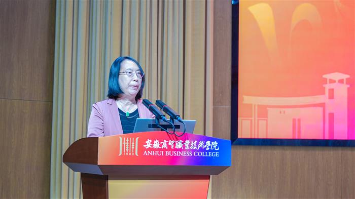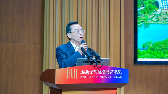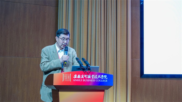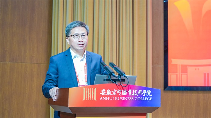 李忠作了题为《厚德弘商,强基赋能,以内涵建设推动学校高质量发展》经验分享。李忠从厚德弘商,构建新徽商育人体系;强基赋能,夯实新商科质量根基;德技并修,建设高水平师资队伍;产教互融,锻造高质量产教融合共同体;三传三引,拓展国际化办学渠道;提质培优,打造高质量发展标志成果等六个方面分享了我校“双高”建设取得的成绩和经验,并和与会学校分享了高质量发展背景下职业教育发展的四点思考。