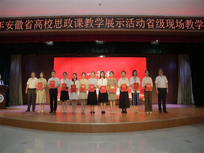 8月8日,2024年安徽省高校思政课教学展示活动在合肥落幕。我校四名参赛思政课教师凭借扎实的教学功底和理论水平全部进入最后的省级现场教学展示环节,并获得优异成绩。其中张敏、章诚两位老师分别获得专科组习近平新时代中国特色社会主义思想概论课程、形势与政策课程特等奖,叶茂老师获得毛泽东思想和中国特色社会主义理论体系概论课程一等奖,张雪梅老师获得思想道德与法治课程三等奖。
