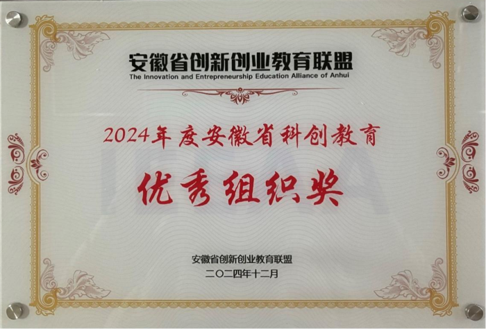 12月24日,2024年安徽省创新创业教育联盟年会暨首届“安徽省创新创业教育论坛”在合肥举行。我校荣获2024年安徽省科创教育优秀组织奖。