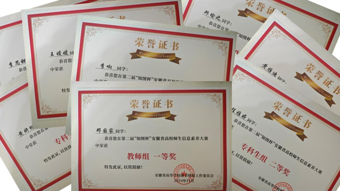 在职业教育高质量发展的浪潮中,我校图书馆积极组织学生参与第六届全国高职高专信息素养大赛以及第二届“知图杯”安徽省高校师生信息素养大赛,师生们凭借出色表现,在赛场上绽放光彩,取得了令人瞩目的优异成绩,为学校职教本科建设增添了浓墨重彩的一笔。