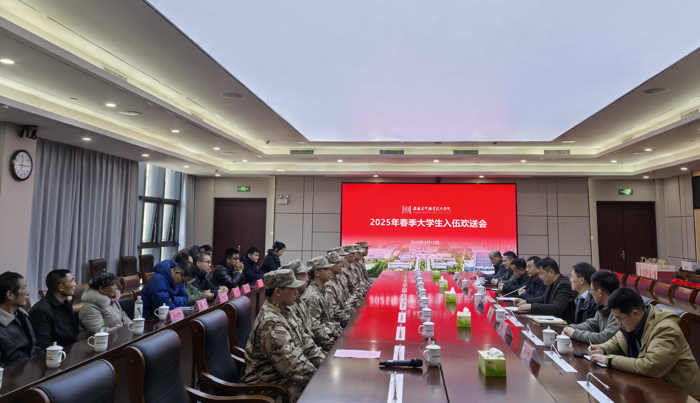 3月17日下午,我校2025年春季大学生应征入伍欢送会在求是会议室举行。学校党委副书记王炜,学生工作处、各二级学院相关负责人、辅导员出席会议,2025年从学校应征入伍的大学生和家长代表参加了欢送会。
