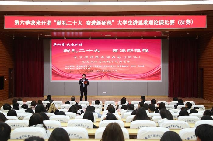为深入学习宣传贯彻党的二十大精神和习近平总书记关于思政课建设的重要论述,持续推进我校思想政治理论课教学改革,切实增强大学生对思政课的获得感,学校马克思主义学院会同教务处、宣传统战部、学生工作处、团委、关工委等部门,组织开展了第六季“我来开讲——献礼二十大 奋进新征程”大学生讲思政课比赛。
