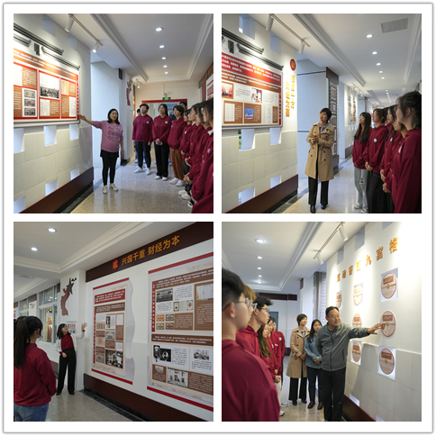 重温红色财经故事,传承艰苦奋斗精神。马克思主义学院组织2023级各班思政委员参观了新建成的“红色财经文化长廊”。参观学习中,马院组建由教研室主任和骨干教师构成的宣讲团队带领思政委员认真观看了红色财经文化长廊的图片、信物和史料,讲述财经救国、财经兴国、财经富国和财经强国的发展历史,分享财经故事,追寻红色记忆,传承革命精神。