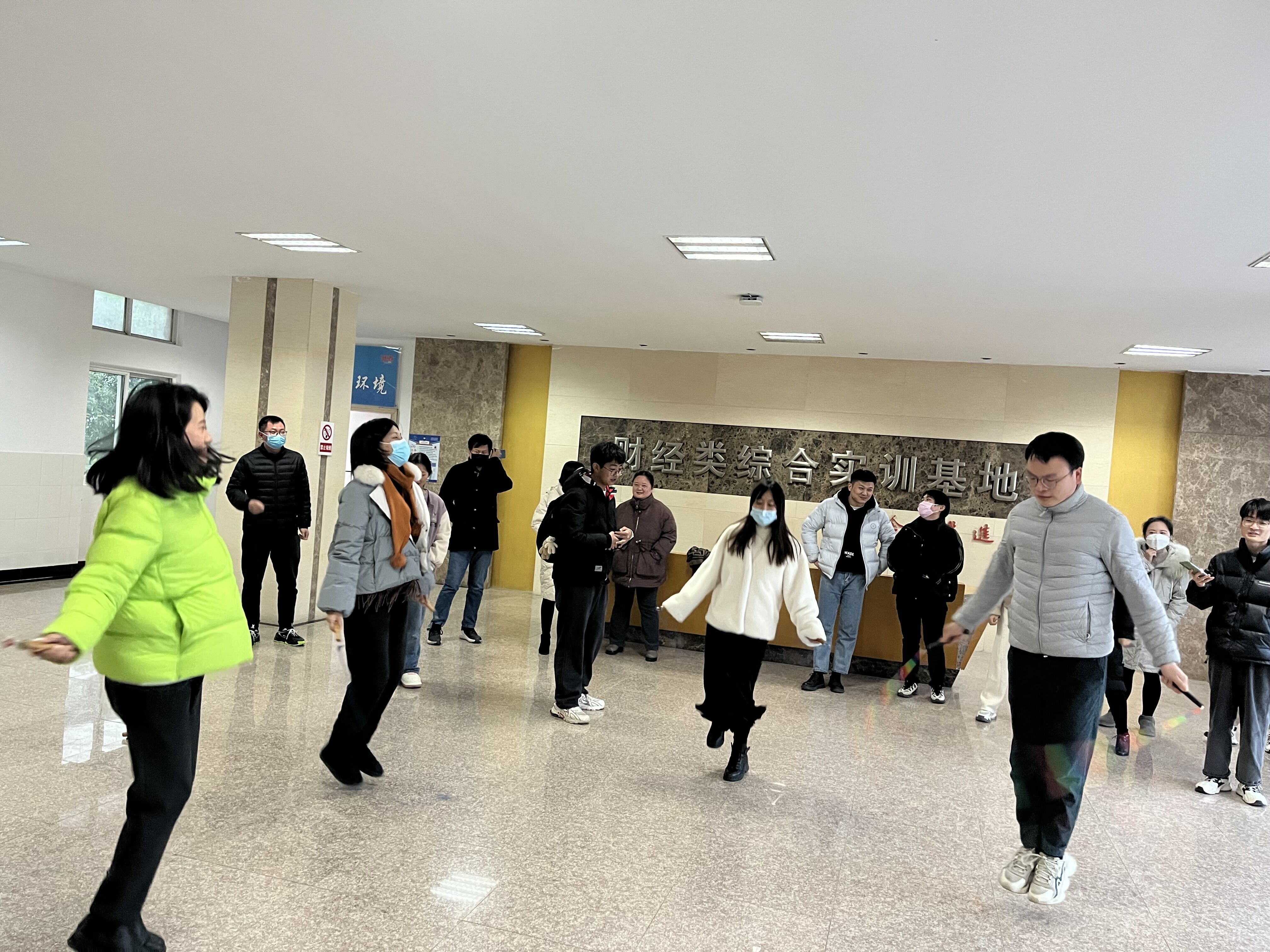 为贯彻落实党的二十大报告中“促进群众体育和竞技体育全面发展,加快建设体育强国”重要精神,丰富学院教职工业余文化生活、提高教职工身体素质,文法与马院分工会12月7日在砺能楼4南大门门厅举办教职工一分钟跳绳比赛。各位教职工积极参与,气氛热烈。