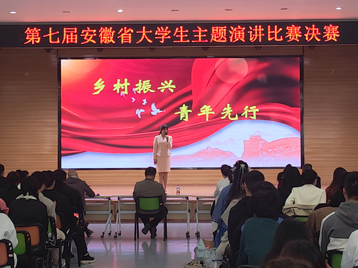 本次比赛由共青团安徽省委员会、安徽省学生联合会、安徽省演讲学会和安徽农业大学承办,以“皖美青春有担当,实践归来话成长”为主题,聚焦于分享青年学生“三下乡”社会实践活动深切感受,分为“主题演讲”和“抽题演讲”两个环节。在“主题演讲”环节,丁文军以《乡村振兴 青年先行》为题,向在场听众分享了她体会到的参加“三下乡”社会实践活动的价值意义。在“抽题演讲”环节,她围绕抽到的视频“我们都是中华民族”进行1分半钟的即兴演讲,号召青年学子以实际行动铸牢中华民族共同体意识。