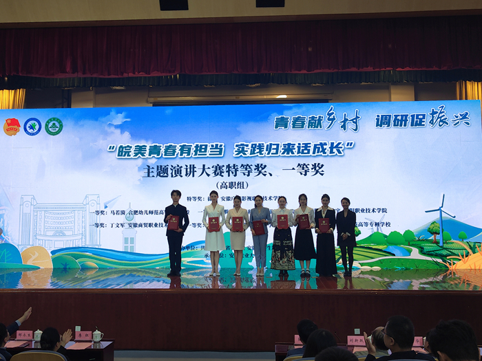 本次比赛由共青团安徽省委员会、安徽省学生联合会、安徽省演讲学会和安徽农业大学承办,以“皖美青春有担当,实践归来话成长”为主题,聚焦于分享青年学生“三下乡”社会实践活动深切感受,分为“主题演讲”和“抽题演讲”两个环节。在“主题演讲”环节,丁文军以《乡村振兴 青年先行》为题,向在场听众分享了她体会到的参加“三下乡”社会实践活动的价值意义。在“抽题演讲”环节,她围绕抽到的视频“我们都是中华民族”进行1分半钟的即兴演讲,号召青年学子以实际行动铸牢中华民族共同体意识。
